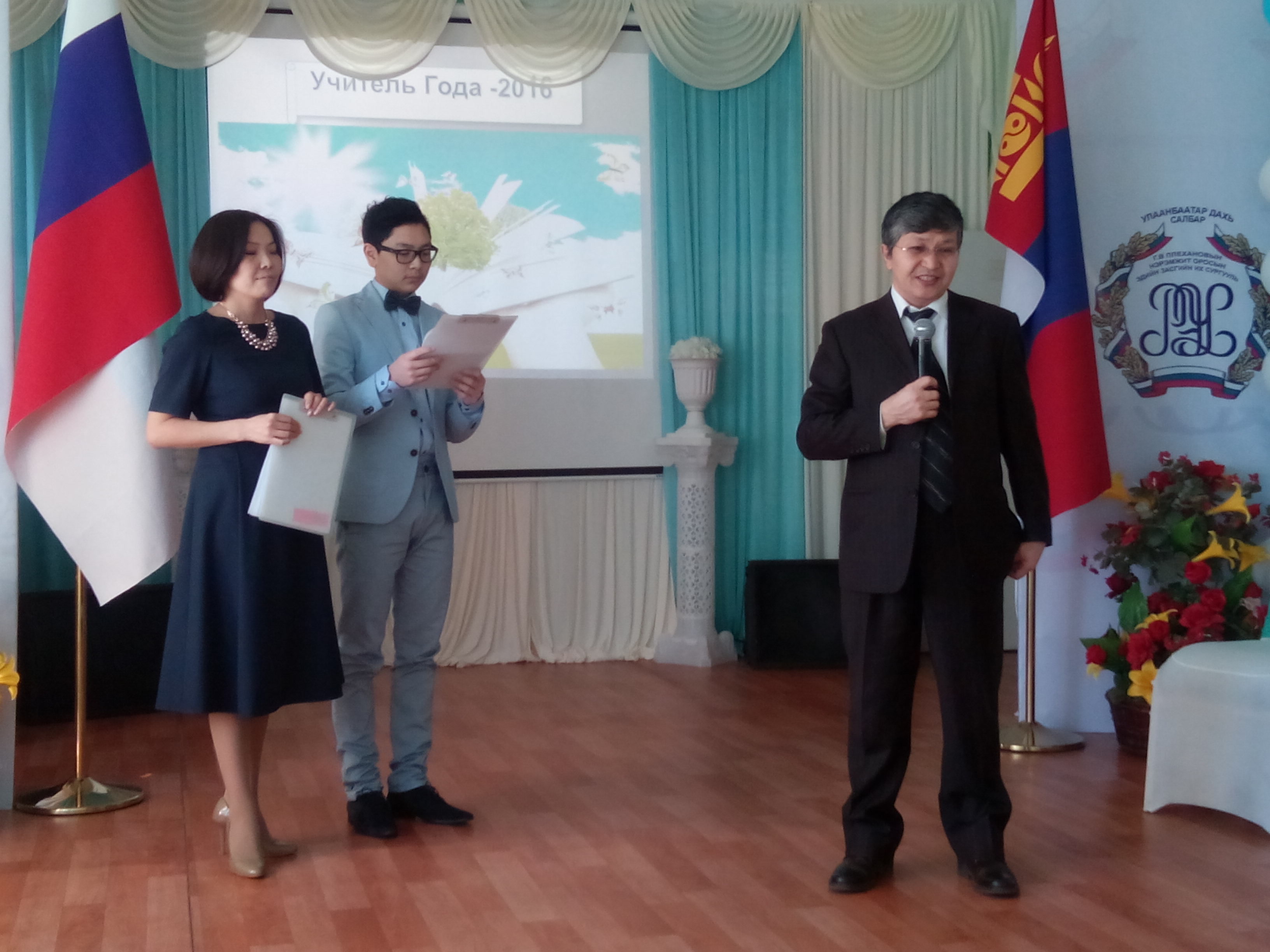 12 марта 2016 года на базе Улан-Баторского филиал РЭУ имени Г.В. Плеханова завершился международный конкурс «Учитель года – 2016». Конкурсные испытания были очень насыщенными, конкурсанты сильнейшими. В ходе конкурсных испытаний участники показали высокий уровень профессионализма при проведении уроков, при участии в дискуссии. Жюри особо отметило высокий уровень проведения уроков Корнелюк О.А. – учителя математики Улан-Баторского филиала РЭУ им. Г.В. Плеханова; Молодецкого Р.Я. – учителя школы при Посольстве РФ в МНР, Згобы В.Б. – учителя английского языка Марковской школы Иркутского района Иркутской области.