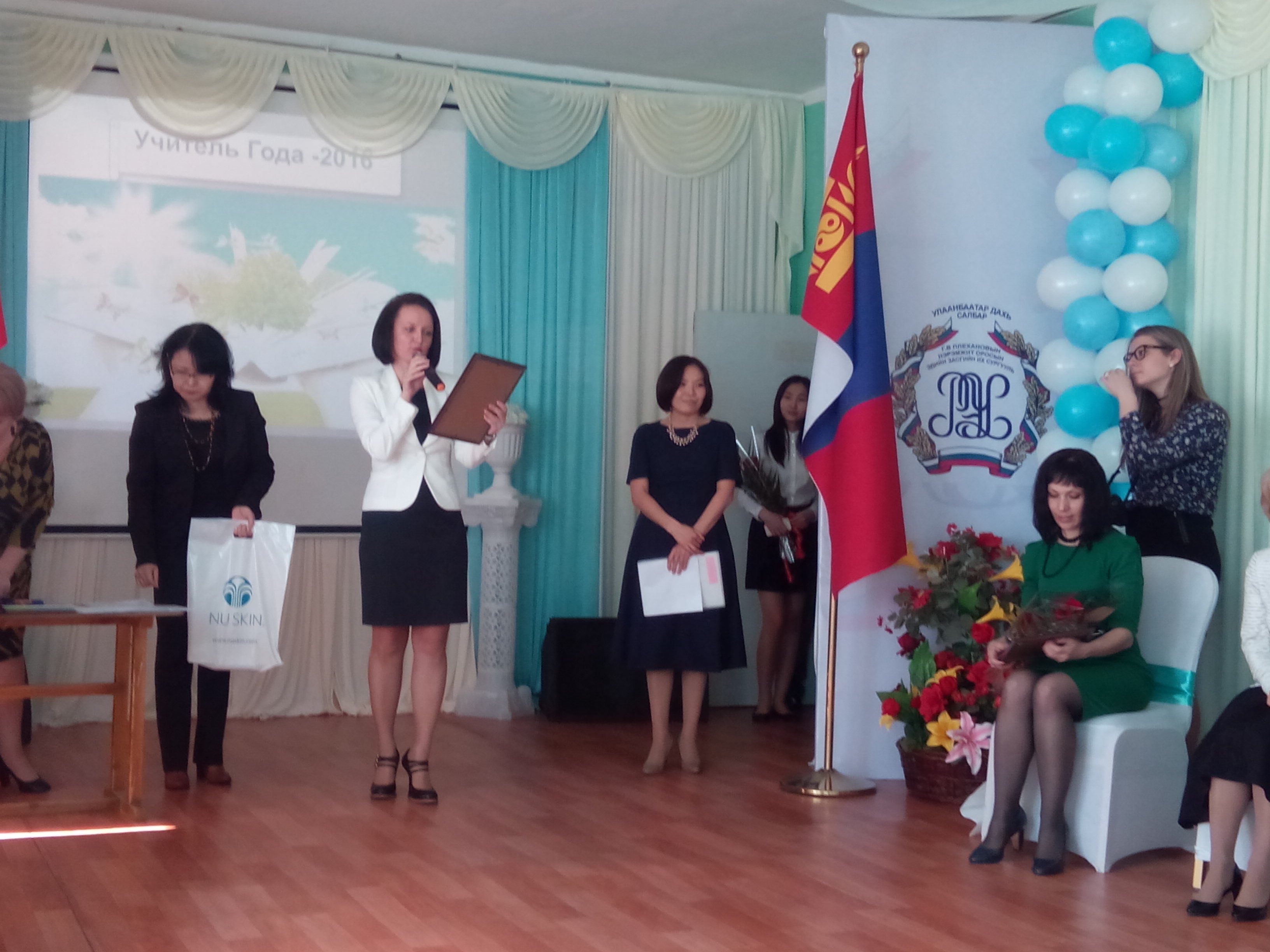 Все участники получили дипломы лауреатов I Международного конкурса «Учитель года – 2016». С приветственными словами в адрес участников и победителей конкурса выступили: Директор Улан-Баторского филиала – Фалилеева Наталья Викторовна, Представитель Российского центра науки и культуры в МНР – Бронская Тамара Вильгельмовна; Представители министерства образования МНР, общества российско-монгольской дружбы/