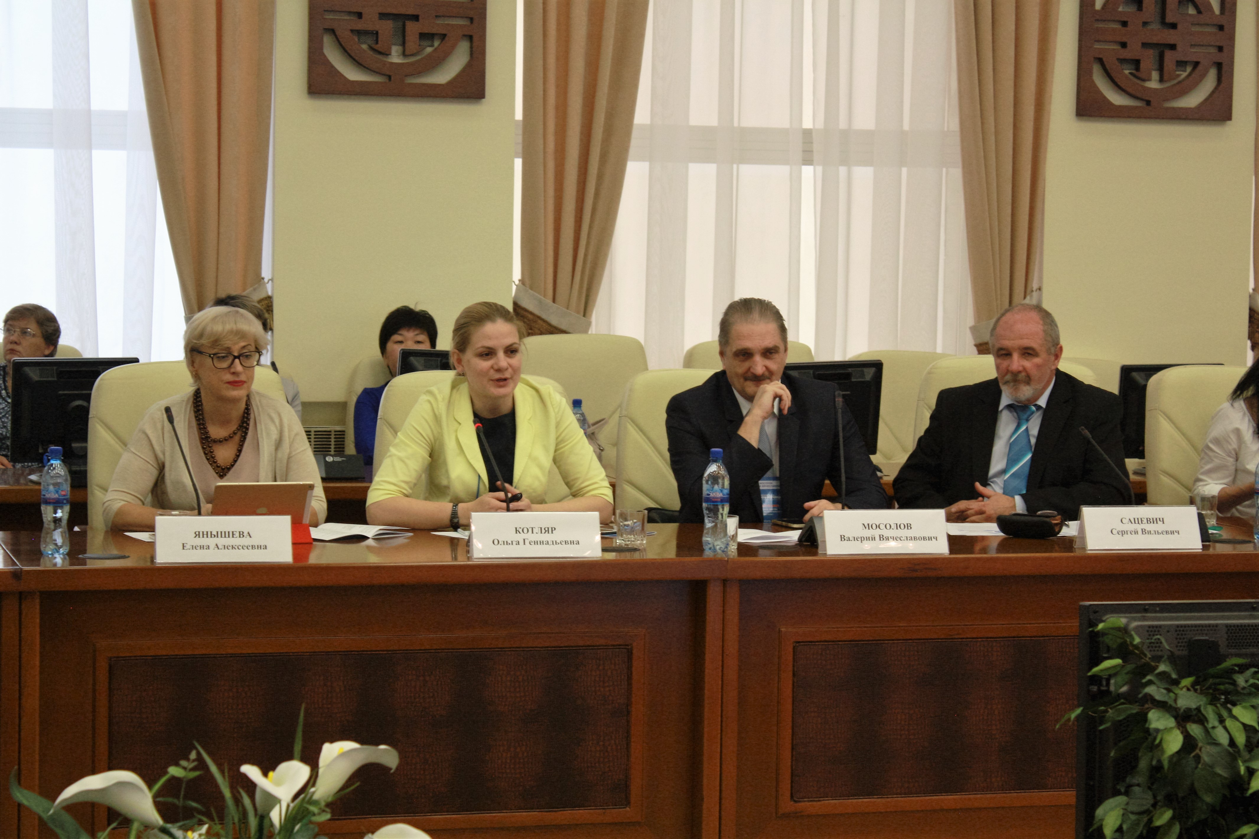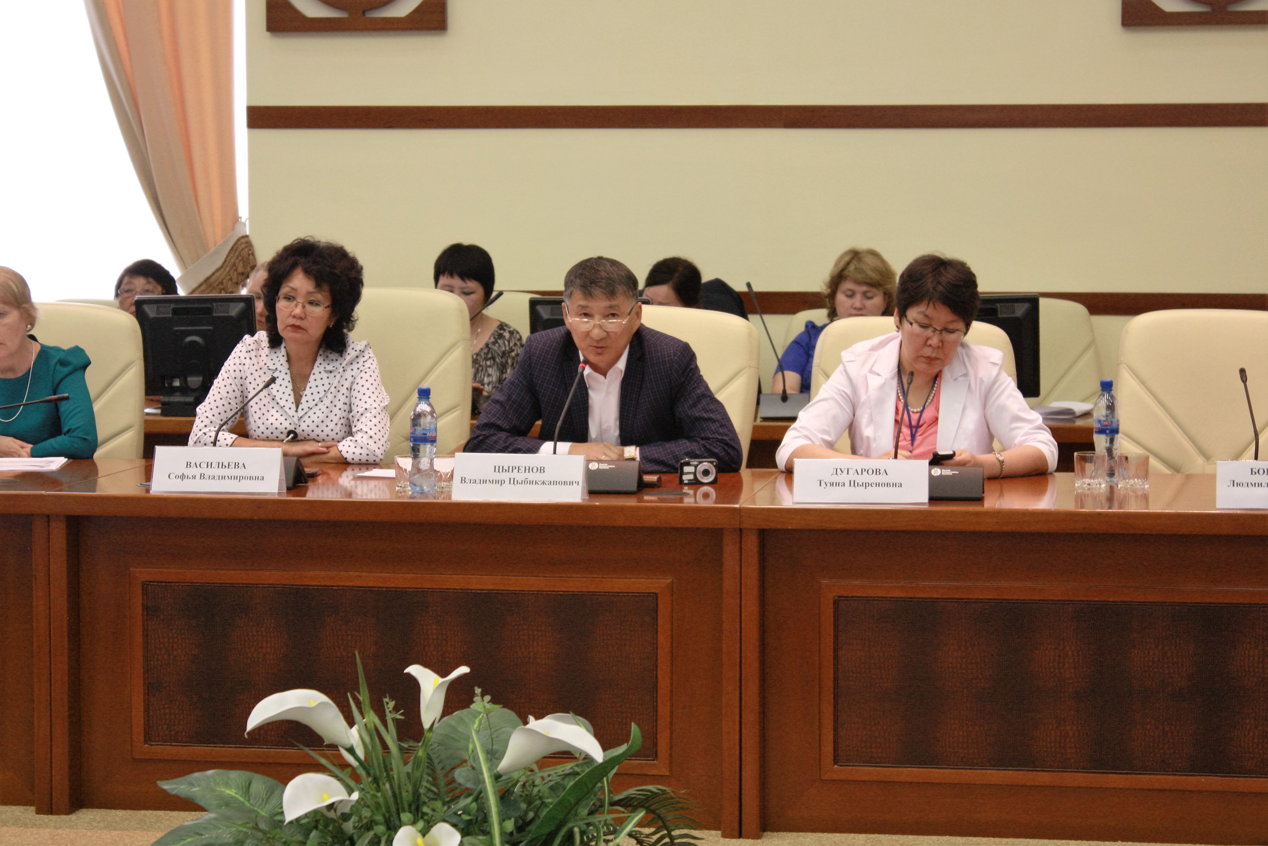 29 августа в рамках республиканской августовской конференции работников образования прошел круглый стол «Образование – основной ресурс развития человеческого капитала», где обсуждались актуальные проблемы образования. В работе круглого стола принимали участие Лариса Фальковская, начальник отдела образования детей с проблемами в развитии и социализации Департамента государственной политики в сфере защиты прав детей Министерства образования и науки Российской Федерации; Виталий Бурдуковский, первый заместитель министра – Председатель Комитета по науке и профессиональному образованию Министерства образования и науки РБ; Баир Жалсанов, заместитель министра – Председатель Комитета общего и дошкольного образования Министерства образования и науки РБ; Доржи Ангархаев, заместитель министра – Председатель Комитета экономики и кадровой политики Министерства образования и науки РБ; Валерий Поздняков, председатель Комитета по надзору и контролю в сфере образования Министерства образования и науки РБ; Дмитрий Метелкин, заместитель руководителя Центра развития образования РАО; Евгений Малеванов, ректор ФГАОУ АПКиППРО; Владимир Цыренов, д.п.н., профессор, зав.лабораторией инновационных технологий в области защиты детства БГУ; Елена Манданова, к.п.н., руководитель ЦМСПРиОО БРИОП; Ольга Трунева, руководитель библиотечного ресурсного центра БРИОП; Софья Васильева, председатель Ассоциации учителей русского языка и литературы РБ; представители издательства «Просвещение», а также руководители районных (городских) управлений образования, методисты РУОМО, руководители образовательных организаций. Модератором работы круглого стола была Галина Фомицкая, ректор ГАУ ДПО РБ «БРИОП».