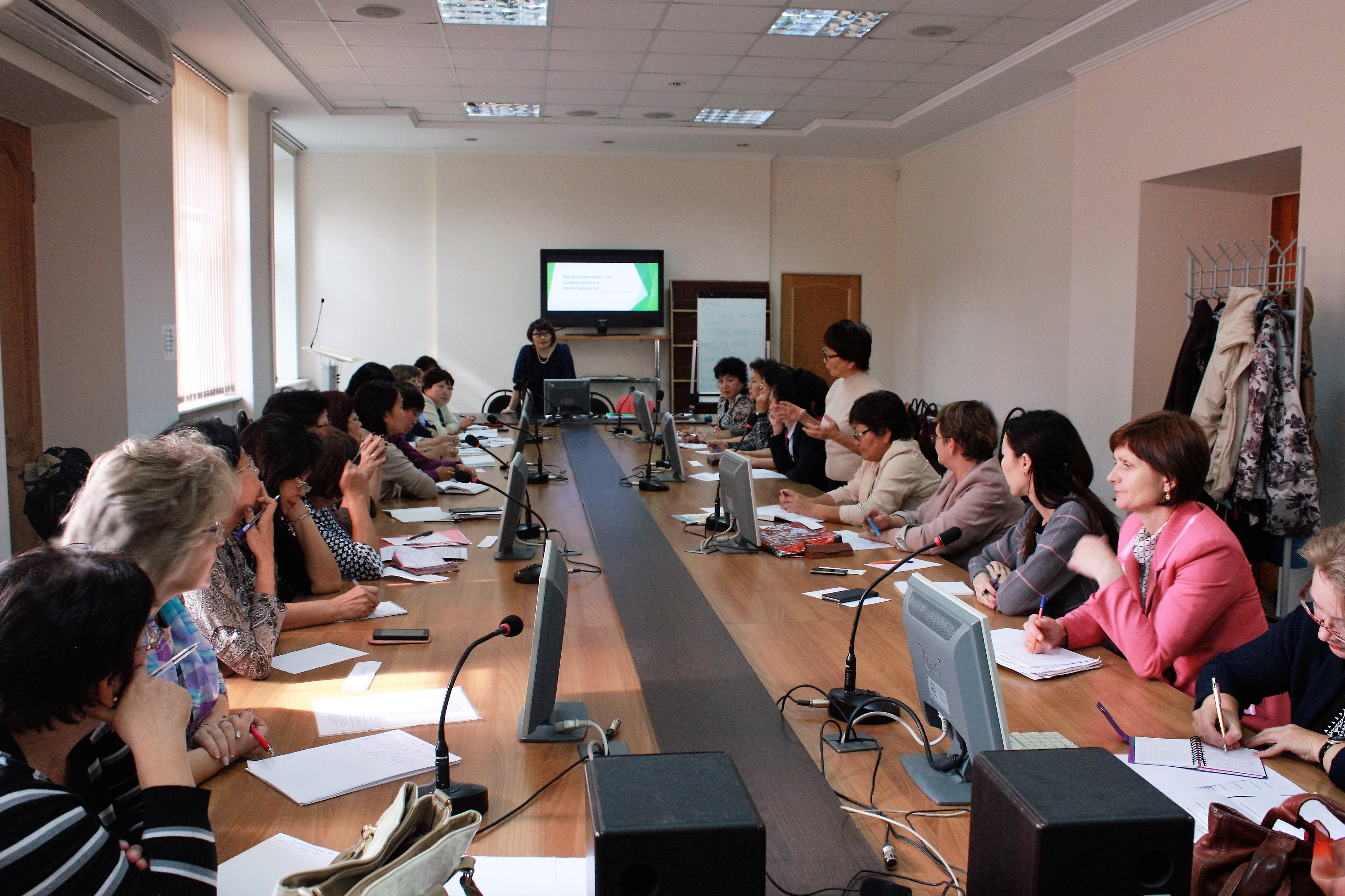 23 сентября 2016 г. Центр развития профессионального образования ГАУ ДПО РБ «БРИОП» провел семинар – практикум по теме: «Технология целеполагания современного урока в профессиональной образовательной организации». На семинаре работали 26 слушателей из 9 профессиональных образовательных организаций. Семинар был направлен на практикоориентированную деятельность. Изначально были определены цели слушателей семинара. После теоретической части (Любовь Халудорова, Аюна Григорьева) вернулись к целеполаганию, которое определили сами участники семинара. Провели работу над ошибками, поскольку большинство слушателей определили цели традиционным способом.