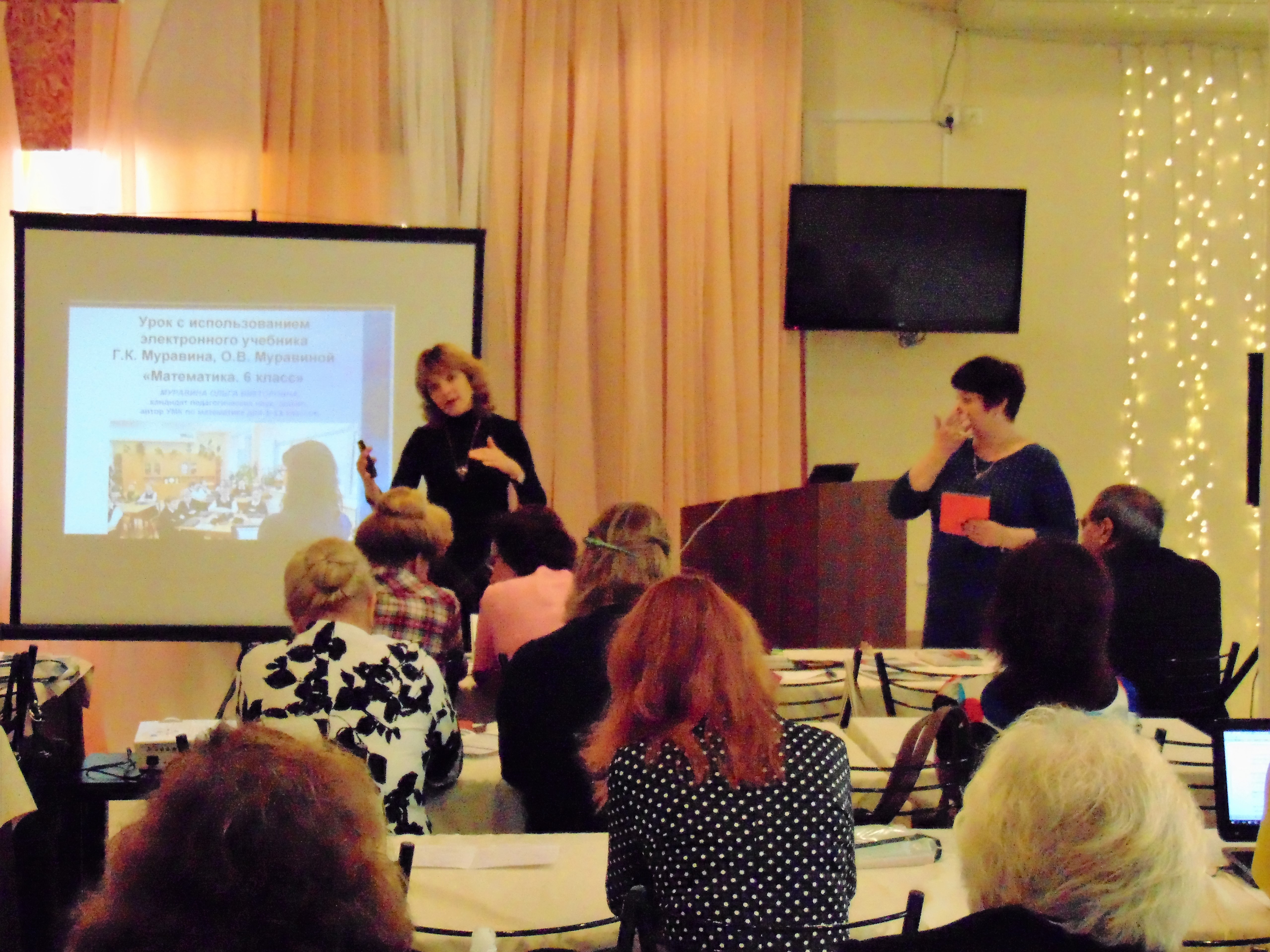 Коллектив авторов УМК в лице Ольги Муравиной, к.п.н., доцента, зав. кафедрой начального образования ИРОТ и Георгия Муравина, к.п.н., зав. кафедрой математического образования ИРОТ выступили с темой «Позитивная педагогика на уроках математики как альтернатива насилию в образовательном процессе».