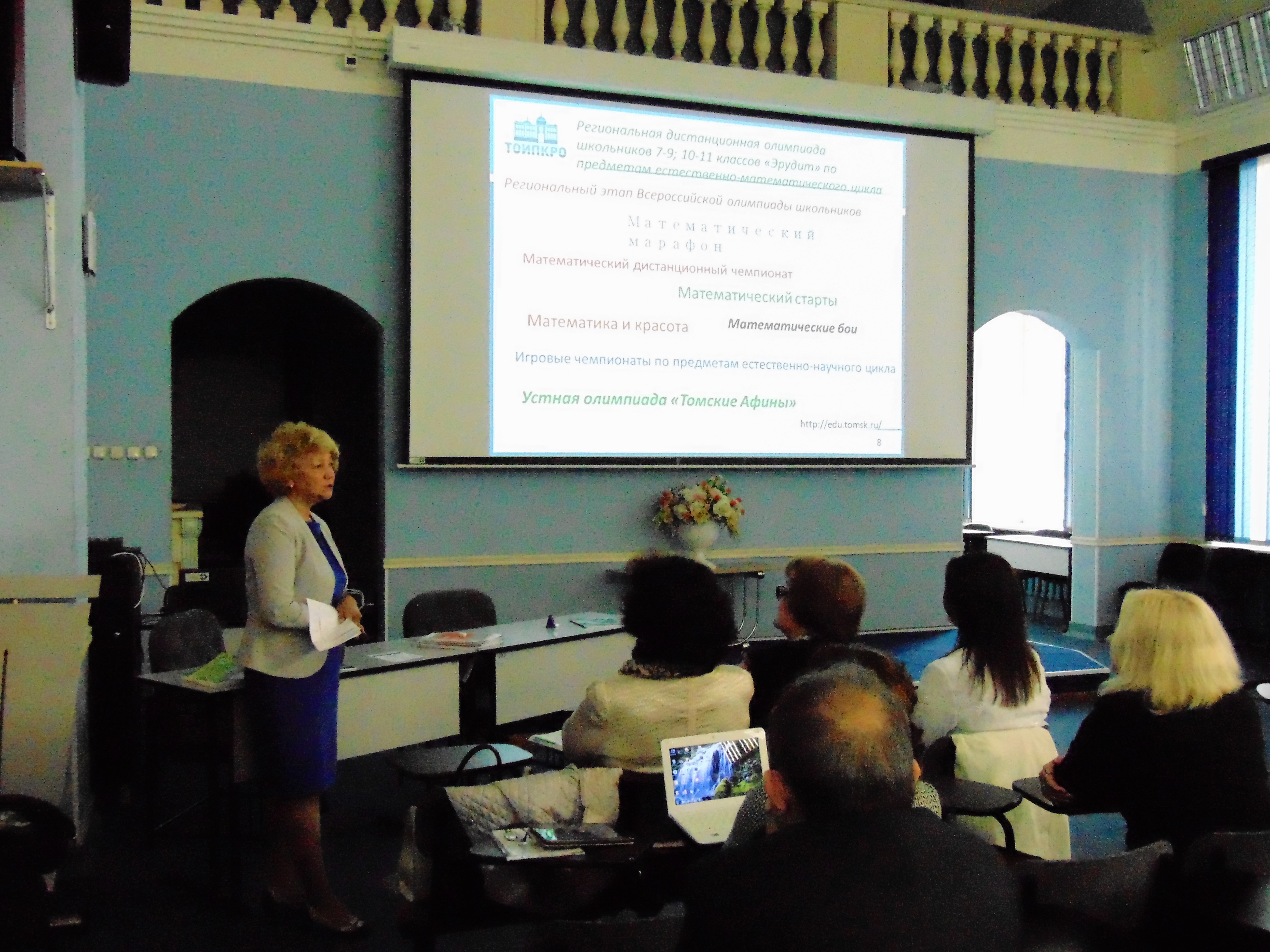 Работу курсов открыли Елена Сайфетдинова, директор МЦ ОСО Объединенной издательской группы ДРОФА» - «ВЕНТАНА-ГРАФ» и Елена Тихонова, директор центра ФМО Объединённой издательской группы «ДРОФА» - «ВЕНТАНА-ГРАФ» с докладом «Вклад объединенной издательской группы «ДРОФА» - «ВЕНТАНА-ГРАФ» в развитие математического образования».