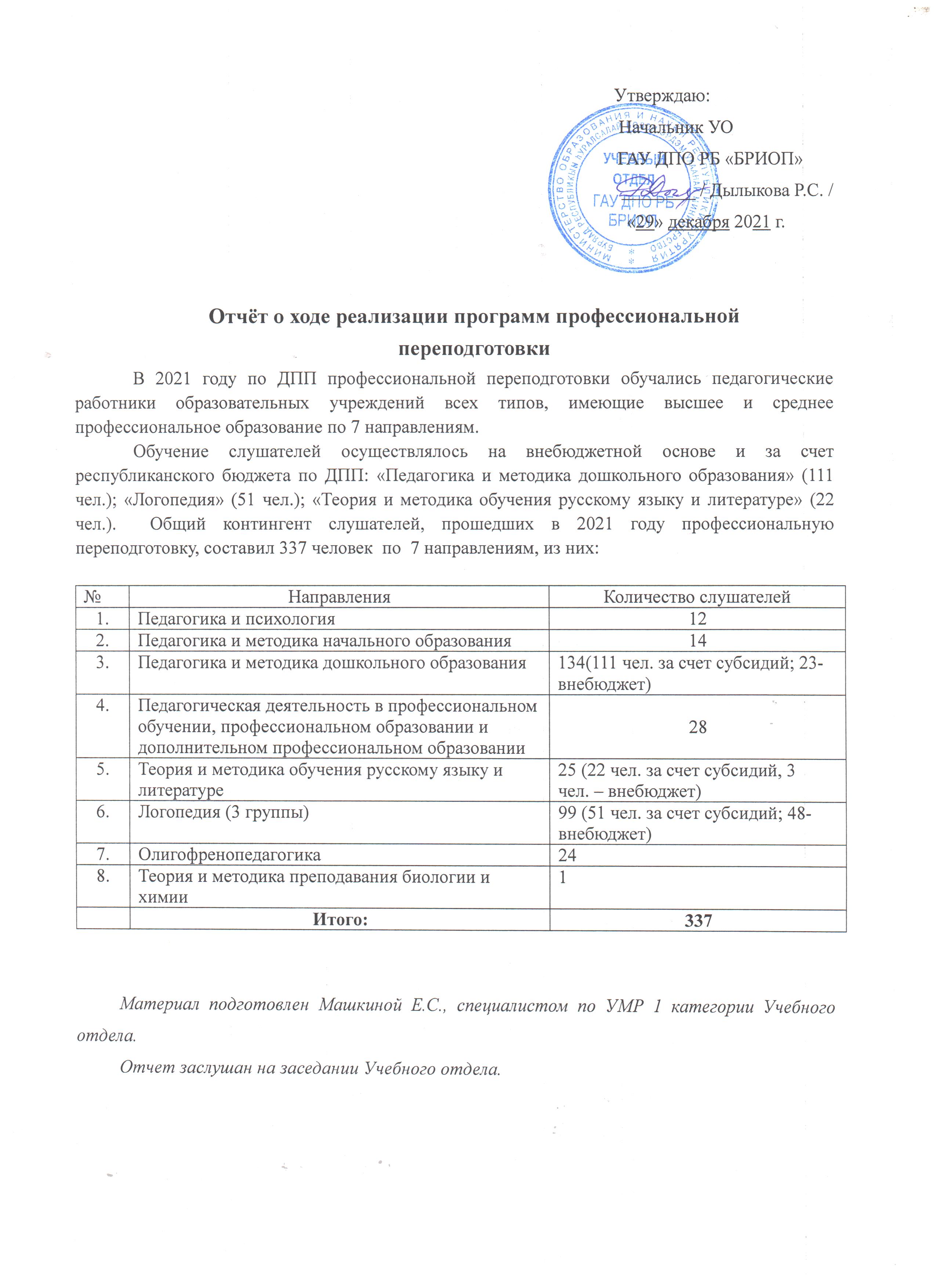 Отчёт о ходе реализации программ профессиональной переподготовки