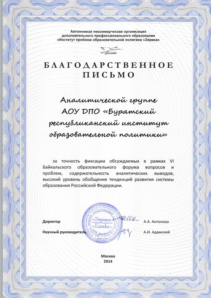 БУРЯТСКИЙ РЕСПУБЛИКАНСКИЙ ИНСТИТУТ ОБРАЗОВАТЕЛЬНОЙ ПОЛИТИКИ