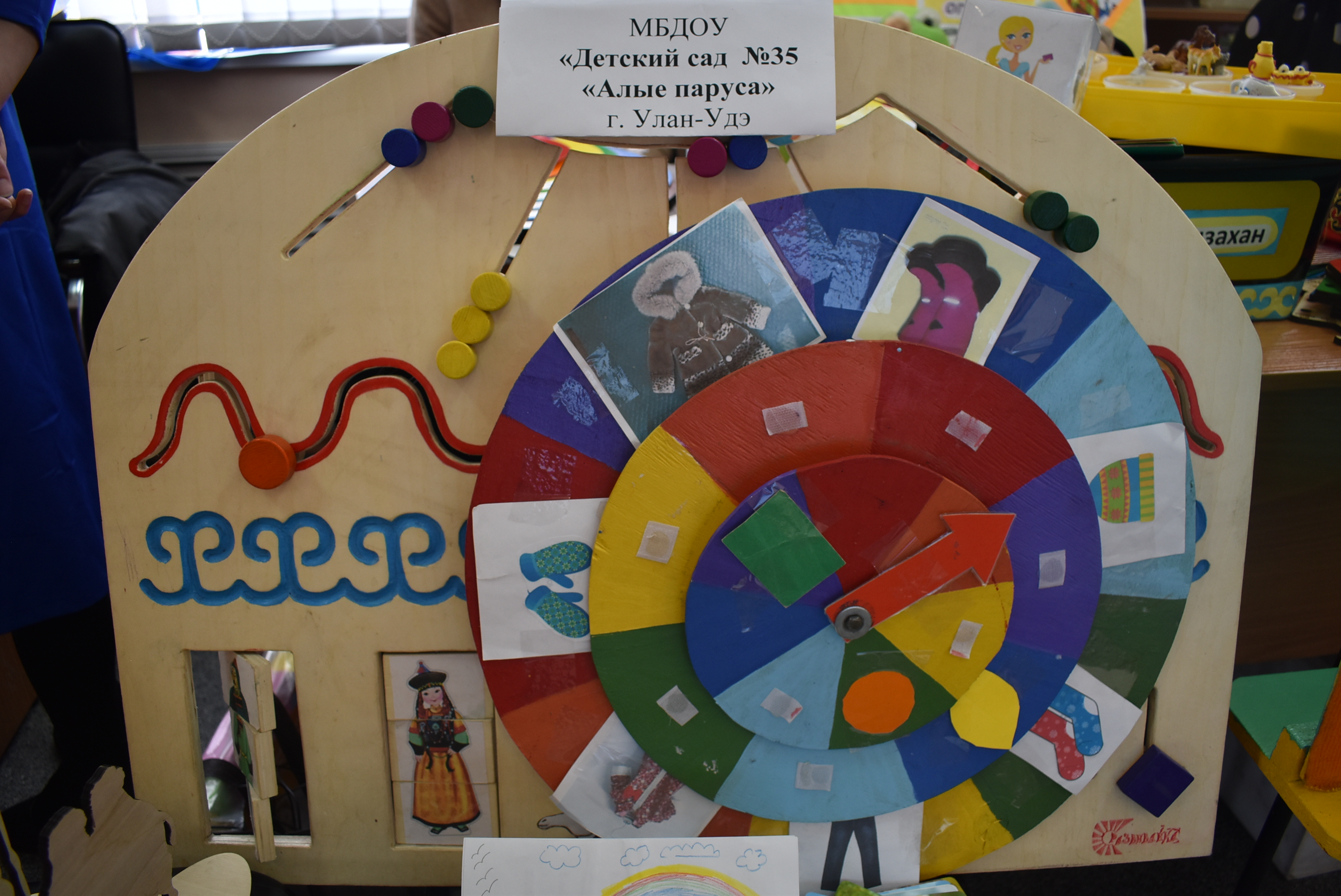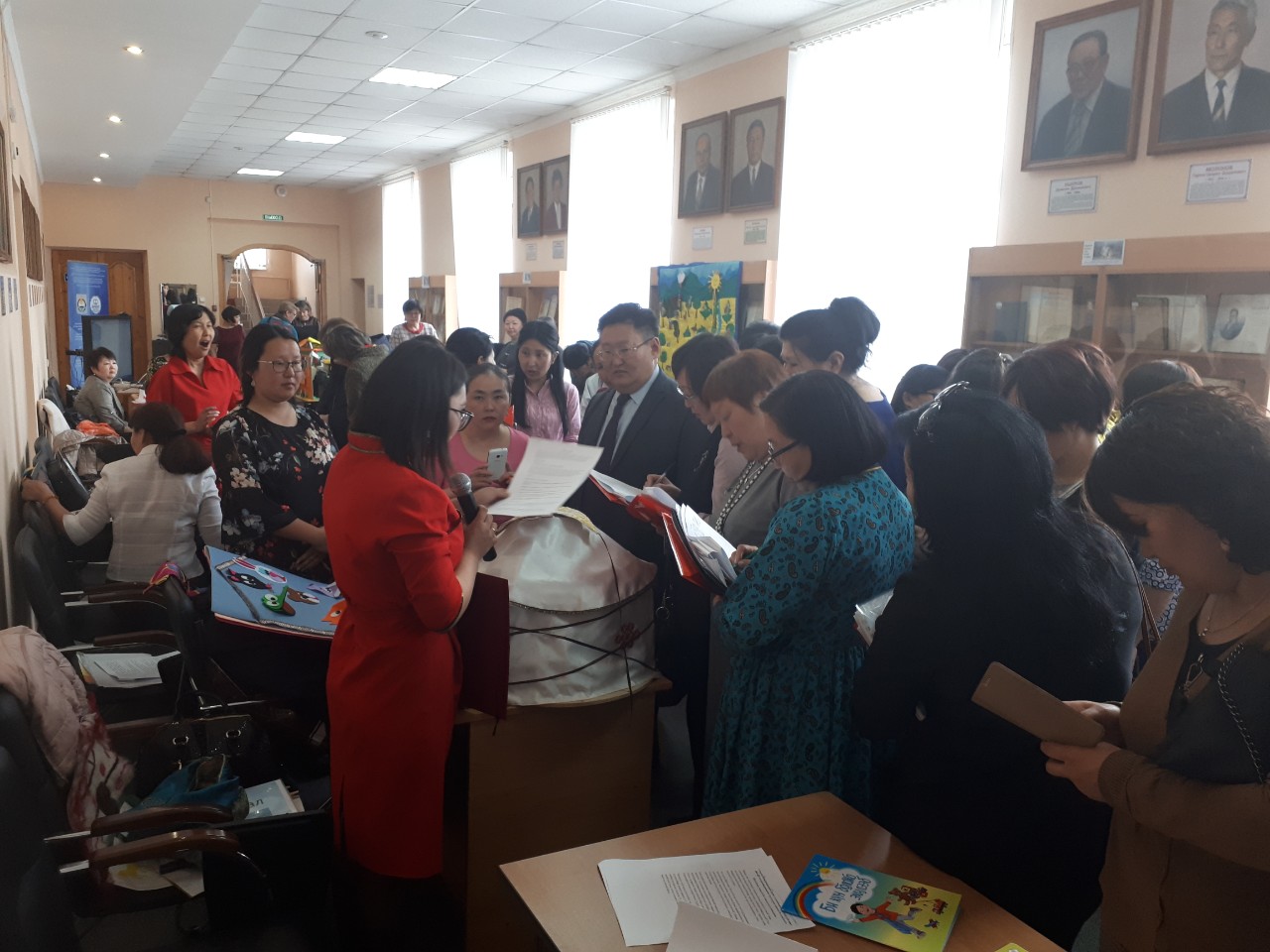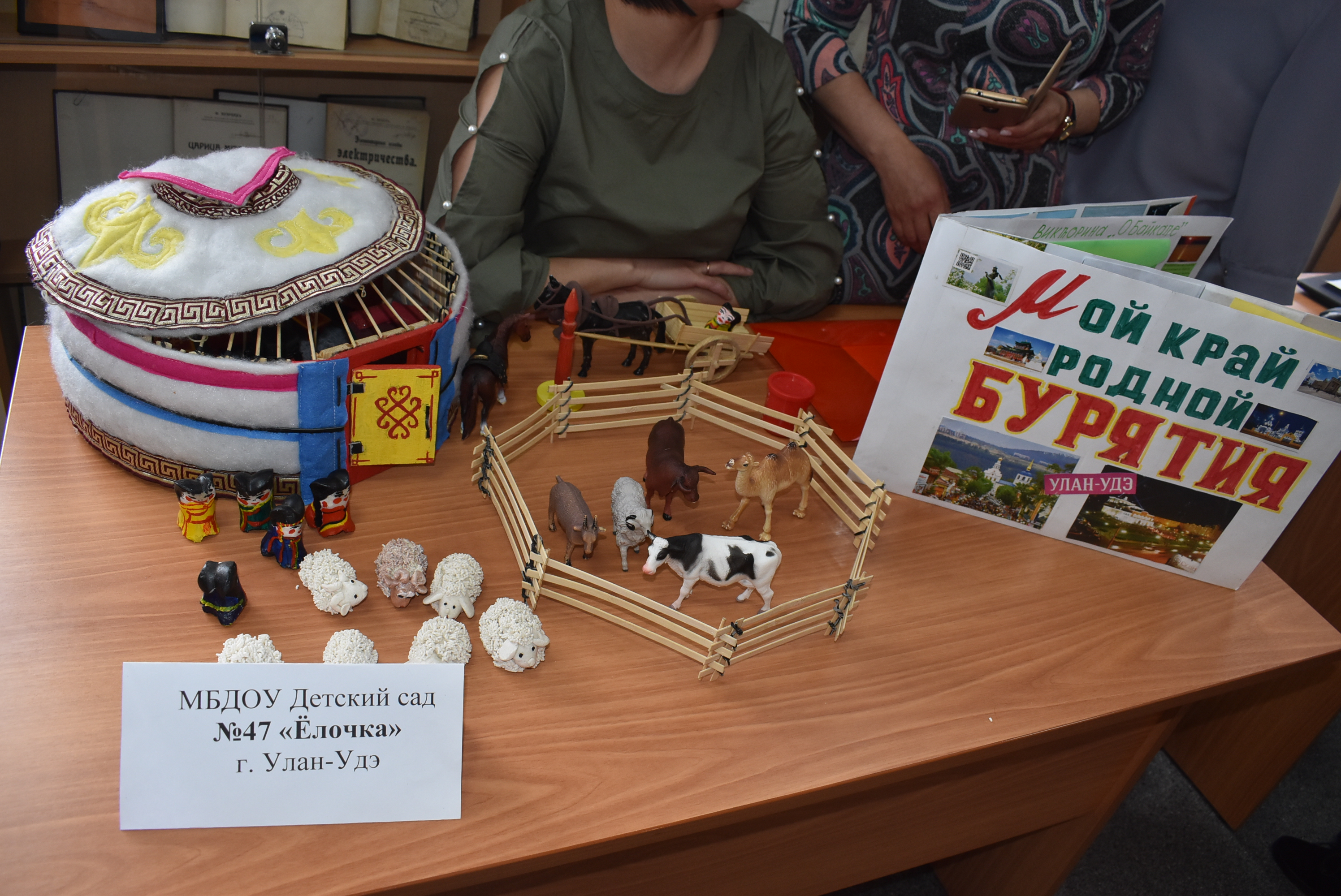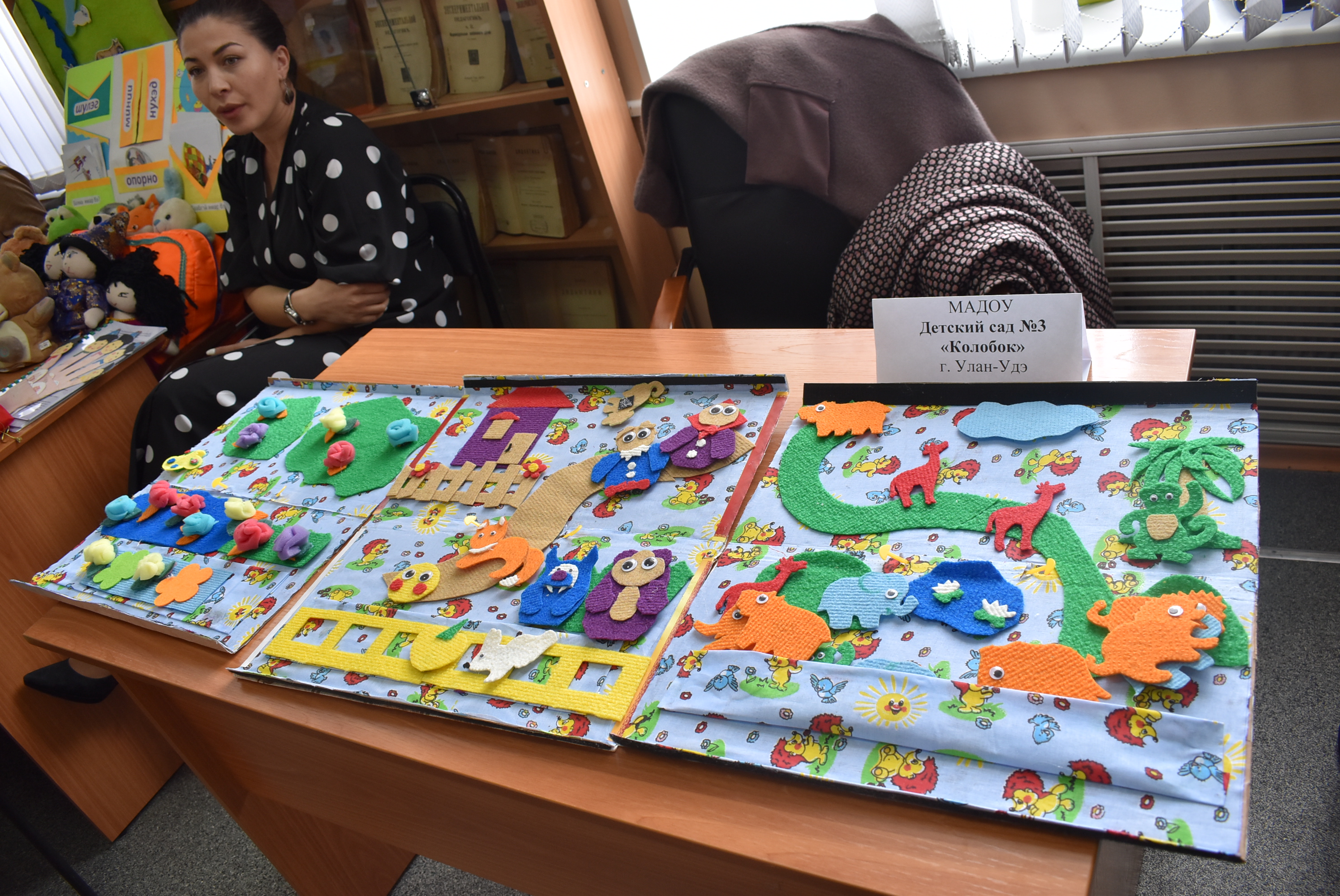 В фойе второго этажа БРИОП была развернута зрелищная и яркая выставка наглядных средств обучения бурятскому языку, развития родной бурятской речи дошкольников, которая дала возможность оценить творческий подход и креативные идеи, в целом методический потенциал учителей бурятского языка, педагогов дошкольного образования республики.