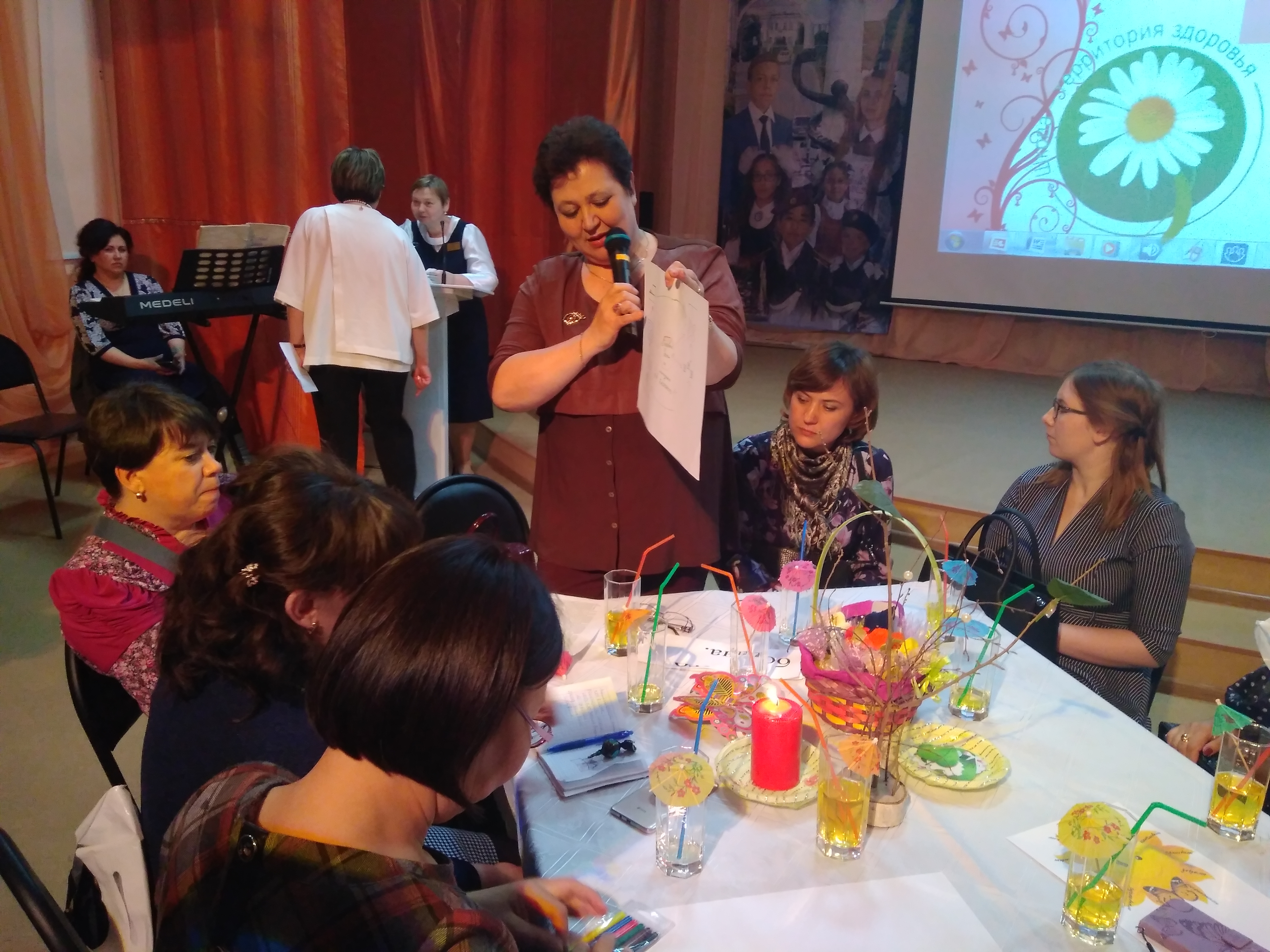 После завершения докладов пленарного заседания, участников разделили по группам и пригласили на образовательные события. Это были открытые уроки, внеклассные и внеурочные занятия, спарт-креатив-игры и итогом образовательных событий был проведен очень интересны и закрепляющий мастер-класс по реализации методики В.Ф. Базарного как одного из условий сохранения и укрепления здоровья, формирования ЗОЖ, развития творческого потенциала личности. Образовательные события были представлены на высоком уровне педагогического мастерства, виден профессионализм, рост учителей, дети активны и приветливы, что позволяет сказать о том, что работа педагогическим коллективом проводится не только по образовательной деятельности, но и культуре и общению. Классы и коридоры школы оборудованы стендами, наглядными материалами, которые направлены на развитие и здоровьесбережение детей: офтальмо тренажёры, стенды на моторику пальцев рук, дорожки на координацию движения и дорожки на профилактику плоскостопия.