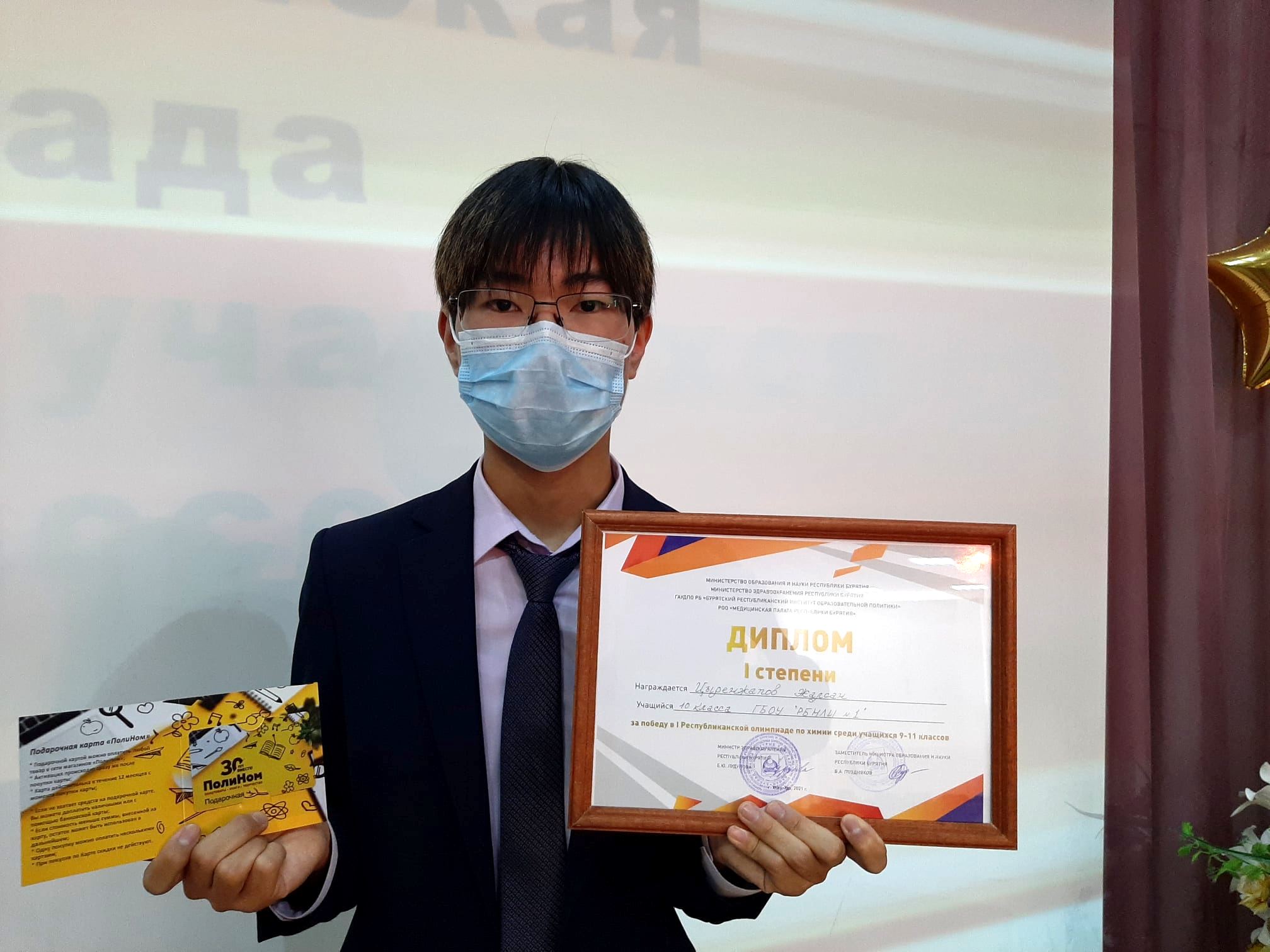 торжественной церемонии закрытия заключительного этапа олимпиады победителей поздравляла Министр здравоохранения Республики Бурятия, д.м.н. Евгения Юрьевна Лудупова. Денежное вознаграждение и благодарственно письмо вручили учителям, которые подготовили победителей.