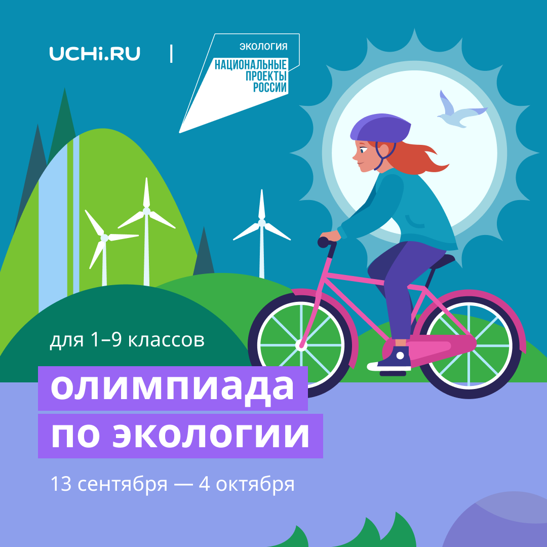 В рамках национального проекта «Экология», ключевые цели которого — охрана окружающей среды, в том числе утилизация и переработка отходов, ликвидация свалок, сохранение лесов и водоемов, снижение выбросов в атмосферу, развитие экологического туризма, сохранение биологического разнообразия, экологическое просвещение широких групп населения Российской Федерации, образовательная онлайн-платформа Учи.ру совместно с автономной некоммерческой организацией «Национальные приоритеты» (далее — АНО «Национальные приоритеты») в период с 13 сентября по 4 октября 2021 года реализуют некоммерческую просветительскую инициативу — Всероссийскую онлайн-олимпиаду по экологии для 1–9 классов (далее — Олимпиада, проект), Ссылка на сайт Олимпиады — https://ecology.uchi.ru/.