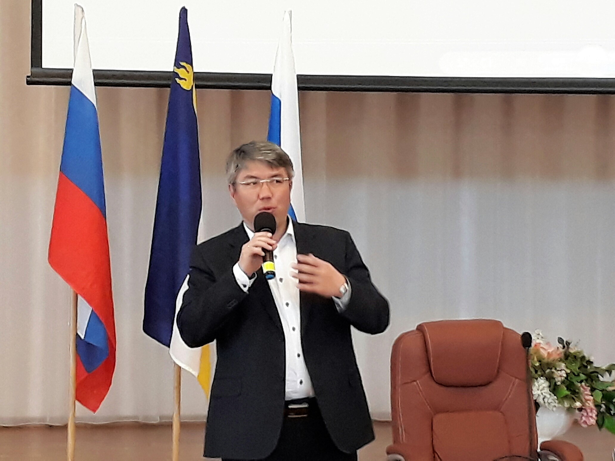 Врио главы свое выступление начал с краткой биографии, после чего он отметил, что образование - это основа того, что мы имеем сейчас, и того, что мы будем иметь в будущем.