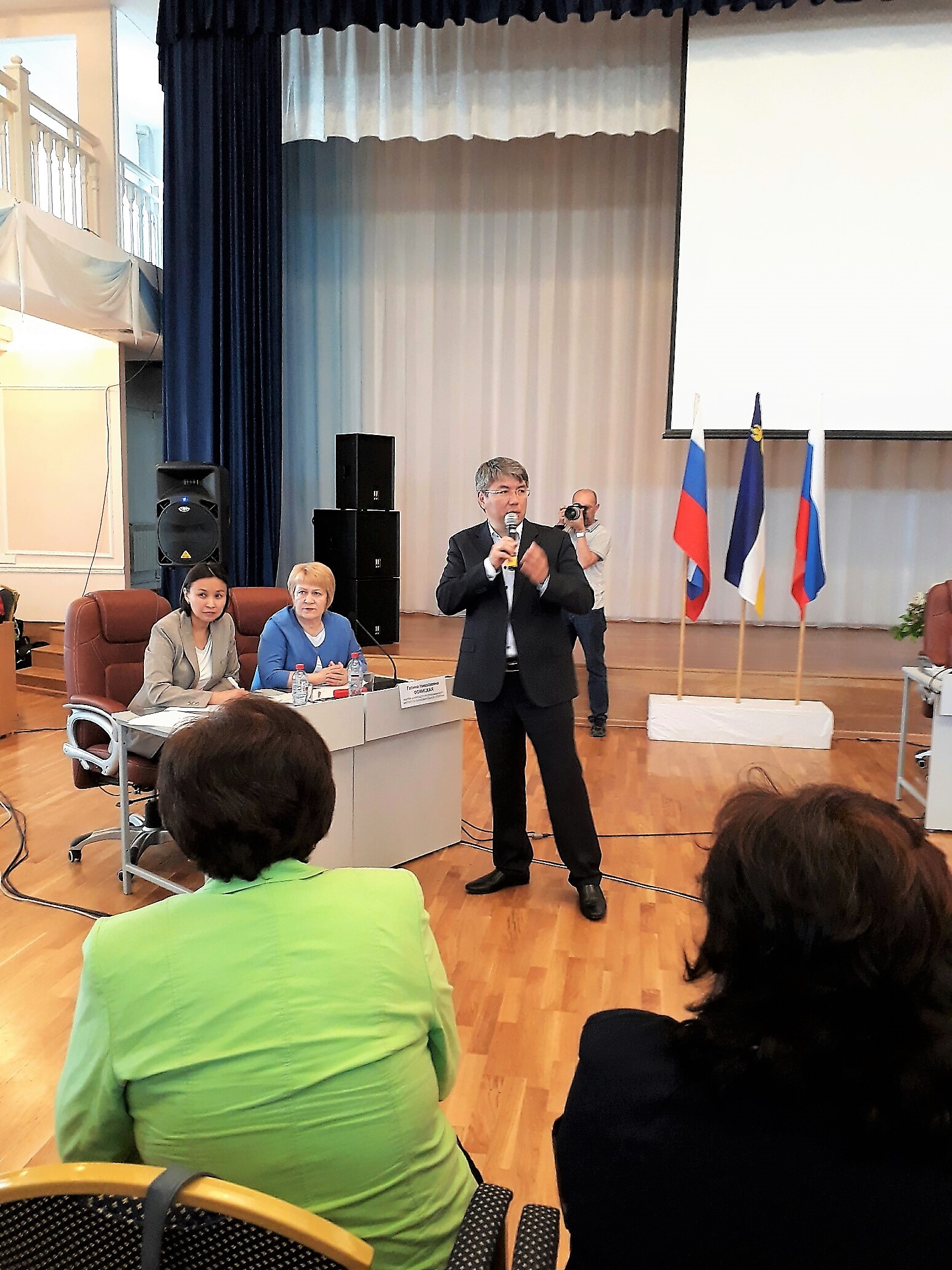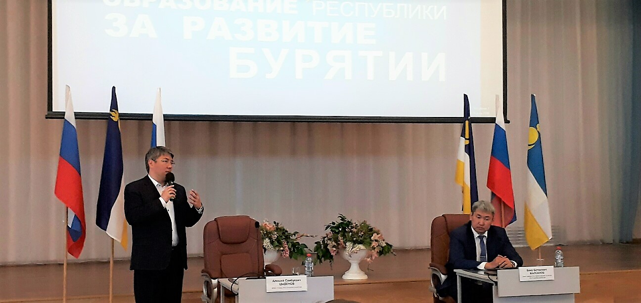29 мая, в бальном зале Бурятского государственного университета врио Главы Бурятии Алексей Цыденов провел встречу с педагогической общественностью республики. На мероприятии модератором встречи выступила Галина Фомицкая, д.п.н., ректор ГАУ ДПО РБ "БРИОП". На встрече присутствовали около 200 представителей педагогической общественности республики.