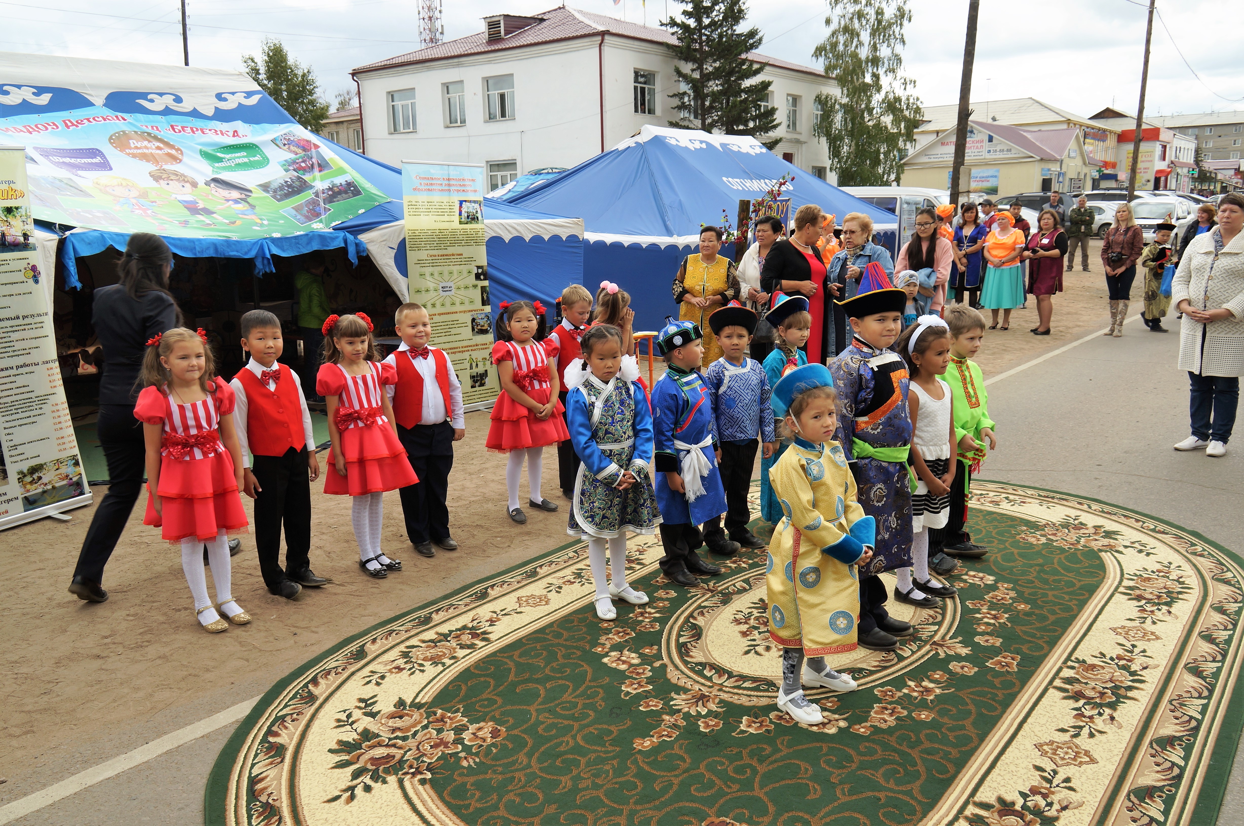 Во второй половине дня участники Байкальского образовательного Фестиваля выехали в Иволгинский район, где на центральной площади поселка Иволгинск развернулась образовательная экспозиция: «Муниципальная система образования: этнокультурные практики». Опыт работы по развитию творческого потенциала детей средствами этнокультурного образования представили инновационные площадки - образовательные организации: МАДОУ «Березка» п. Иволгинск, МБДОУ «Рябинка» с. Сотниково, МБДОУ «Улаалзай» с. Оронгой, МБОУ СОШ с. Оронгой, МБОУ СОШ с. Верхняя Иволга, МБОУ СОШ с. Сужа, МБОУ СОШ п. Иволгинск. Стажеры пробовали свои способности и умения в народных играх, танцах, песнях, инсценировании сказки, мастер-классах по росписи на ткани, дереве, камнях, работе с овчиной, гобеленом, бисером, обработке художественных бронзовых скульптур, изготовлении элементов национальной одежды, приготовлении национального блюда - бууз, поделок из природного и бросового материала, игрушек - сувениров из полимерной глины, игре на народных инструментах - чанзе, морин хууре и т.д.