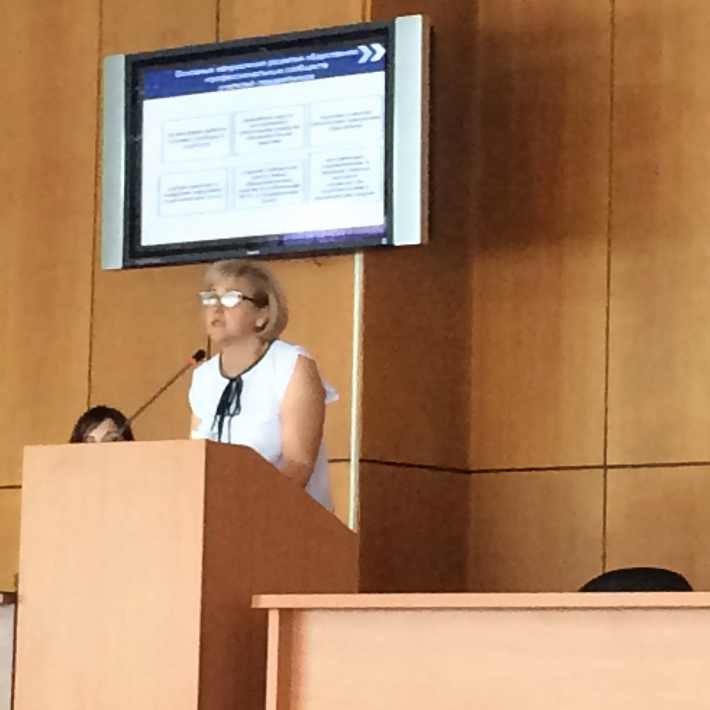 Екатерина Морозова, председатель РОО «ЕНАП» с докладом «Опыт деятельности Единой независимой ассоциации педагогов г. Москвы»;
