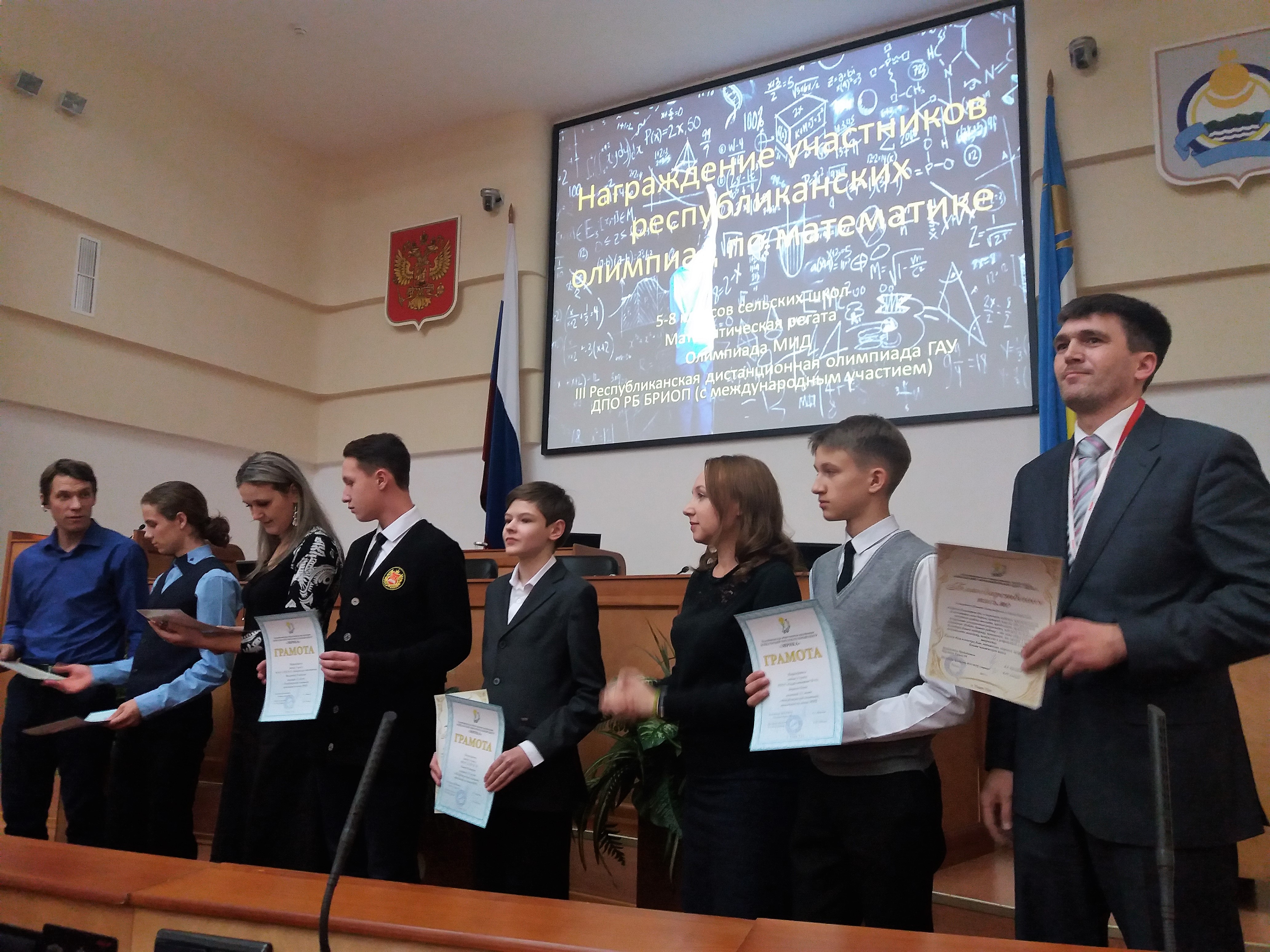 21 декабря в Большом зале заседаний Народного Хурала Республики Бурятии состоялась торжественная церемония награждения победителей и призеров Республиканских математических олимпиад: