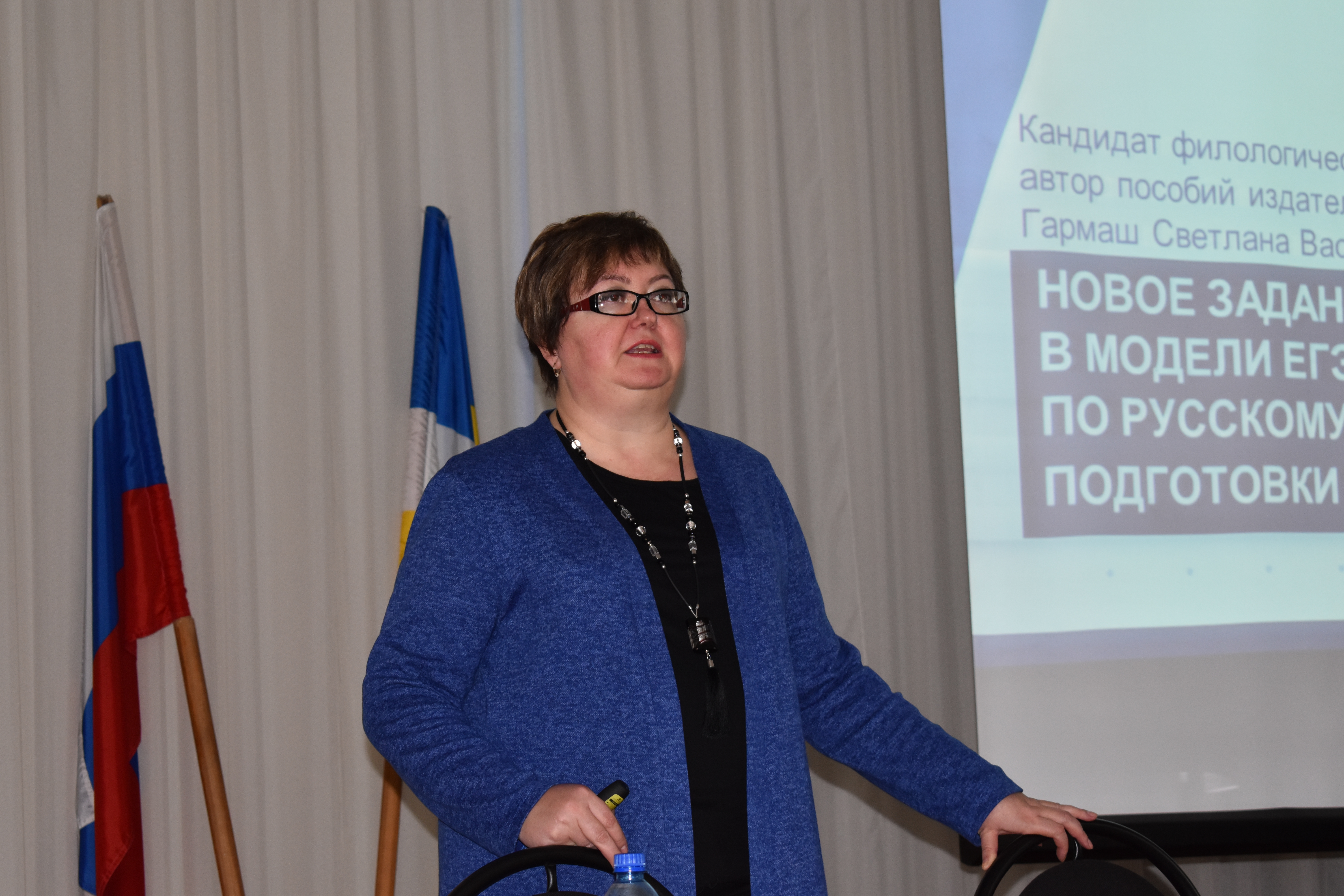 Во второй половине дня рассматривались вопросы подготовки к итоговому собеседованию в 9-х классах и написанию развернутых ответов в ОГЭ по русскому языку. Светлана Гармаш представила пособия издательства «Легион», посвященные ВПР в 5 и 6 классах. Во время семинара была организована выставка-продажа пособий по подготовке к ЕГЭ, ОГЭ, ВПР по русскому языку, литературе, итоговому сочинению в 11 классе.