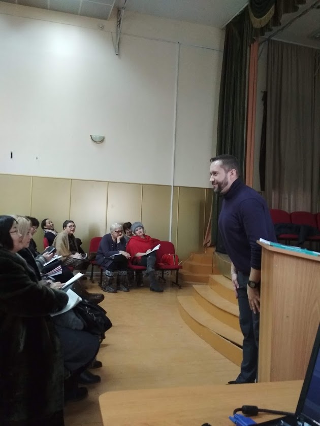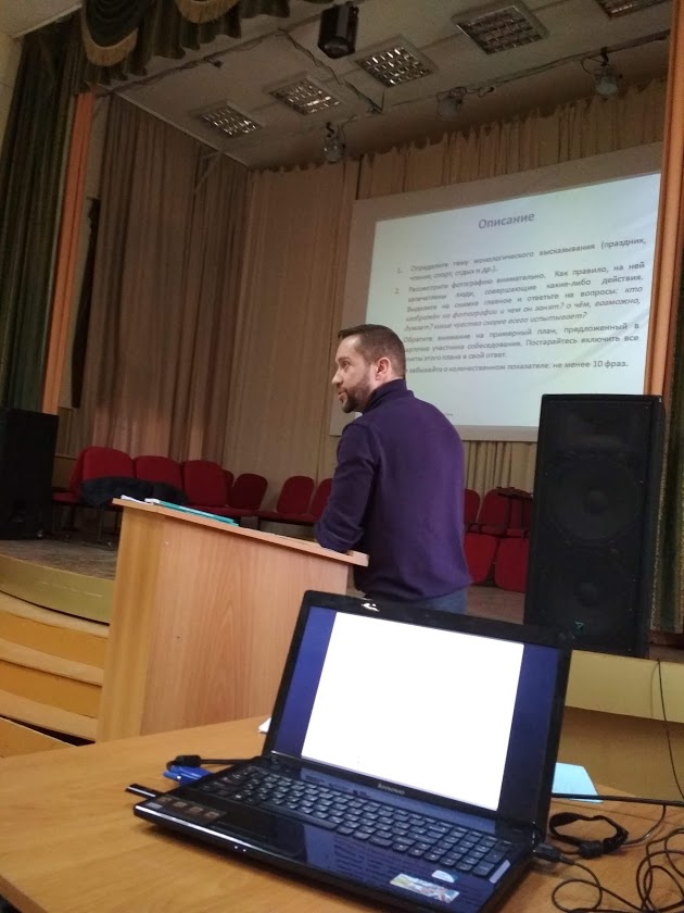 В первой половине семинара говорилось о Концепции преподавания русского языка и литературы и Плане ее реализации. Были рассмотрены новые формы итоговой аттестации, в том числе устное собеседование для выпускников основной школы. Эта тема очень актуальна для преподавателей русского языка и литературы, так как 13 февраля 2019 года выпускники впервые будут проходить это испытание в штатном режиме. Олег Бойцов рассмотрел практики и техники формирования навыков устной коммуникации на уроке, разграничил понятия коммуникативной компетенции и компетентности. Итоговое собеседование представляет собой проверку коммуникативной компетенции, таких видов речевой деятельности, как чтение и говорение. Далее были представлены приемы развития выразительного чтения как мастерства отражения ощущений и размышлений.