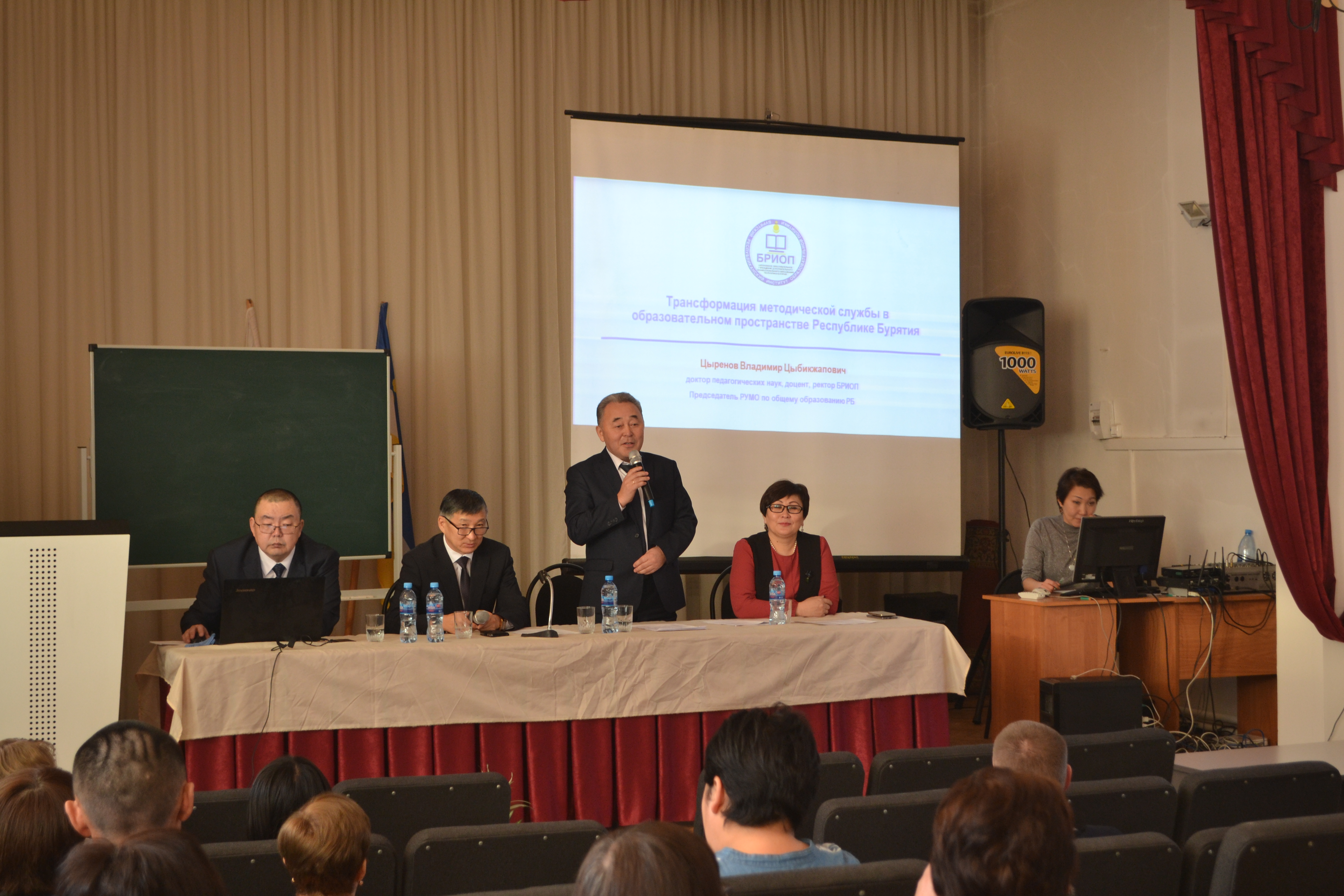 В своем докладе «Трансформация методической службы в образовательном пространстве Республики Бурятия» д.п.н., ректор БРИОП Владимир Цыренов отметил, что методическая служба в современных условиях должна быть выстроена по другому. Должно идти проектирование персонифицированных ОП на основе анализа результатов оценочных процедур, отработаны технологии персонифицированной методической помощи по преодолению затруднений учителей, имеющих профессиональные дефициты. Здесь свое слово должен сказать БРИОП. Деятельность методической службы должна начинаться с аналитики, информирования, затем должна строиться организационно-методическая работа, организовываться консультирование по вопросам воспитания и преподавания. Предложил несколько тем для обсуждения на заседаниях ШМО.