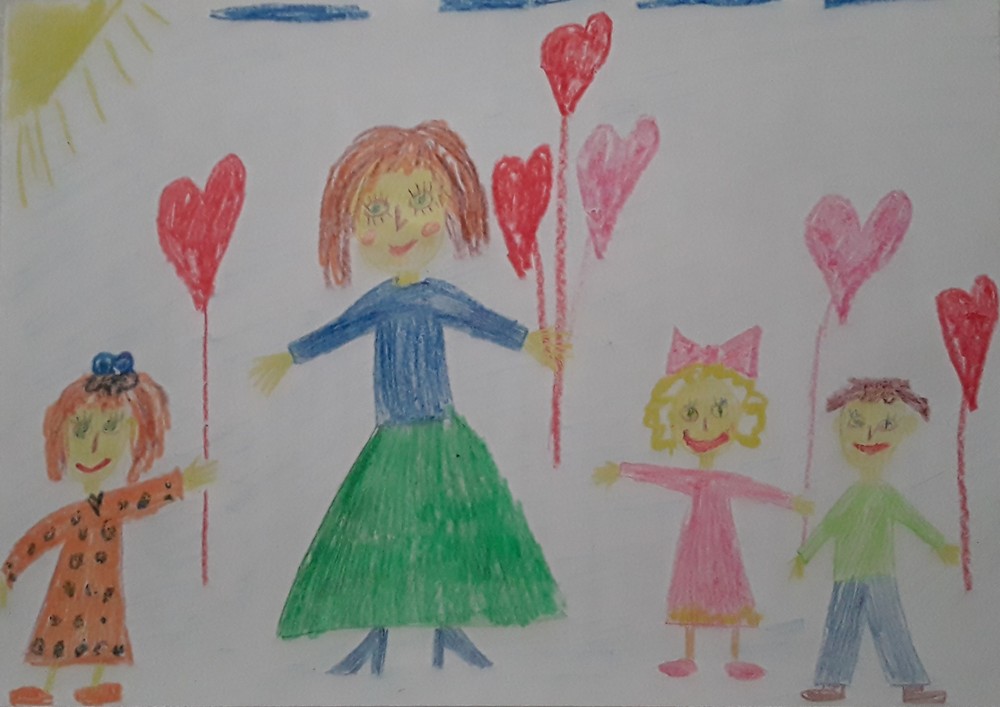 1 место – Семёнова Ева, 6 лет. «Воспитатель дарит любовь». МБДОУ детский сад «Колосок» (Тарбагатайский район). Педагог: Осоргина Надежда Александровна.