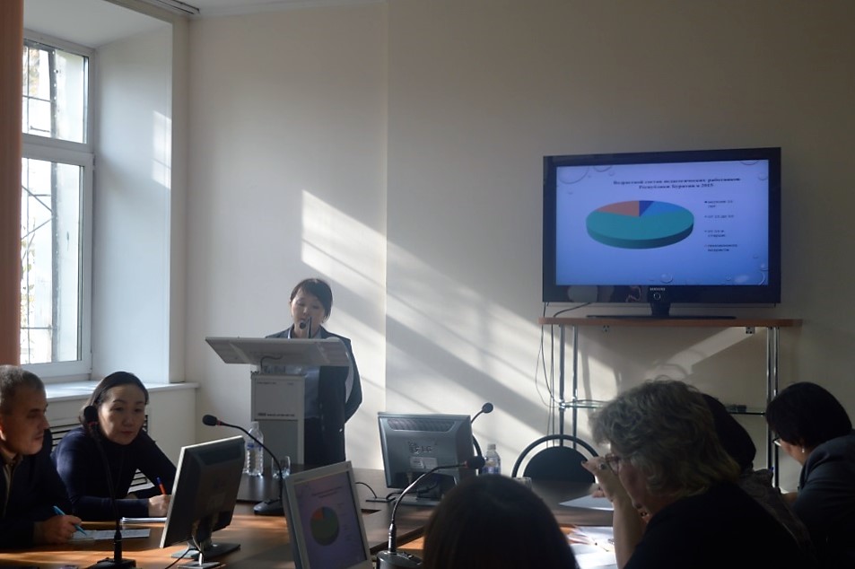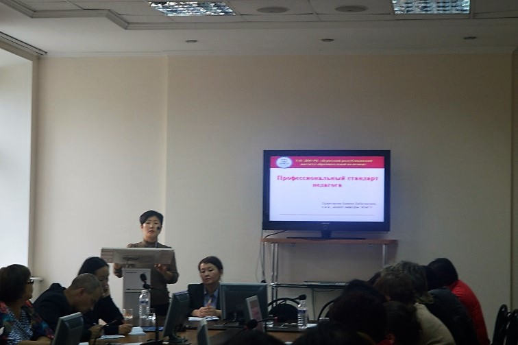 - консультант отдела организационной и кадровой работы Саяна Дашинимаева информировала о кадровом обеспечении образовательного процесса в условиях внедрения профстандарта педагога.