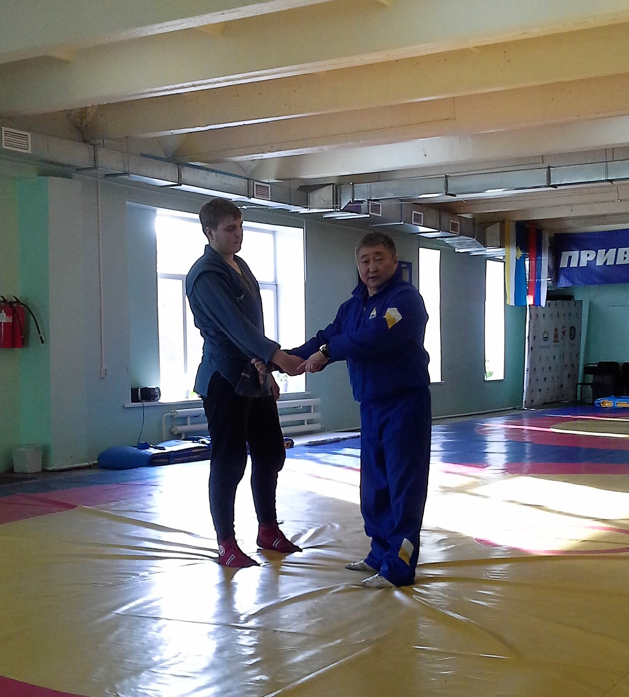 На семинаре были рассмотрены вопросы методики преподавания самбо в рамках учебной программы «Физическая культура», продемонстрированы элементы самостраховки при падении на бок, на спину, на грудь. Учителям данные приемы были продемонстрированы под руководством Тумэна Санжиева нашими именитыми спортсменами - чемпионами мира: Баиром Омоктуевым, Андреем Будажаповым и молодым тренером-преподавателем Александром Катушенко.