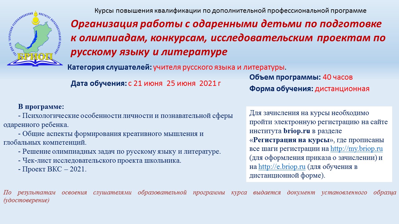 Кафедра гуманитарных дисциплин ГАУ ДПО РБ «БРИОП» 16 июня 2021 года проводит заседание Школы молодого учителя Республики Бурятия по теме: «Мотивация как важнейший компонент учебной деятельности».